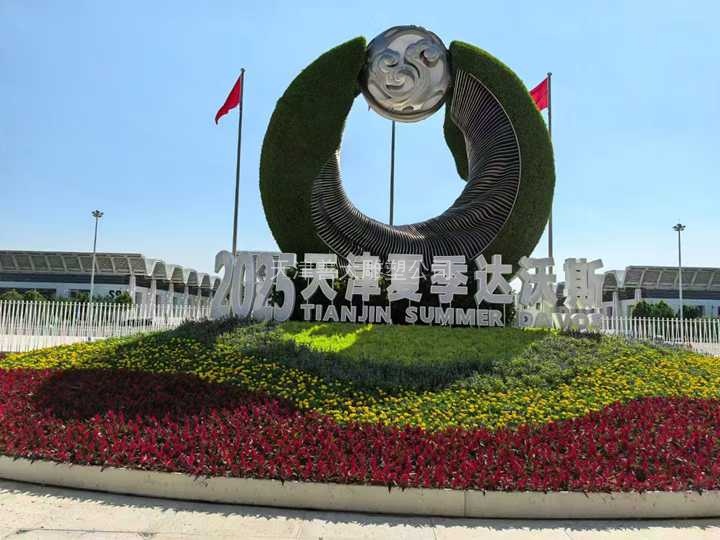 2025-07-03天津善大雕塑公司設(shè)計(jì)施工作品2025夏季達(dá)沃斯主題雕塑藝術(shù)裝置在天津國展中心主會場建成。核心亮點(diǎn):一.?東方智慧的當(dāng)代轉(zhuǎn)譯:???靈感源自紅山玉龍、玉璧祥云紋等東方禮器,將其精髓解構(gòu)重塑。???打造“凌空懸浮的渾源玉佩”意象,以現(xiàn)代304不銹鋼骨架承載千年美學(xué)。?????巧妙融合海河浪潮動態(tài)線條,賦予靜態(tài)雕塑流動生命力。二.?生態(tài)理念的立體宣言:???“鋼鐵為骨,綠意作魂”:雕塑不僅是藝術(shù)品,更是...